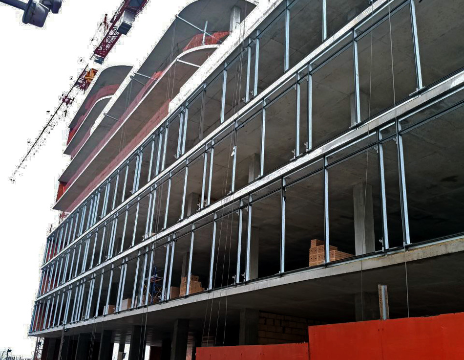 Проєкт стійко-ригельної системи з вентильованим фасадом передбачає використання вертикальних стійок і горизонтальних ригелів у поєднанні з елементами вентильованого фасаду. Це дає змогу створити естетичну та функціональну оболонку будівлі, забезпечуючи не тільки структурну підтримку, а й ефективну вентиляцію.