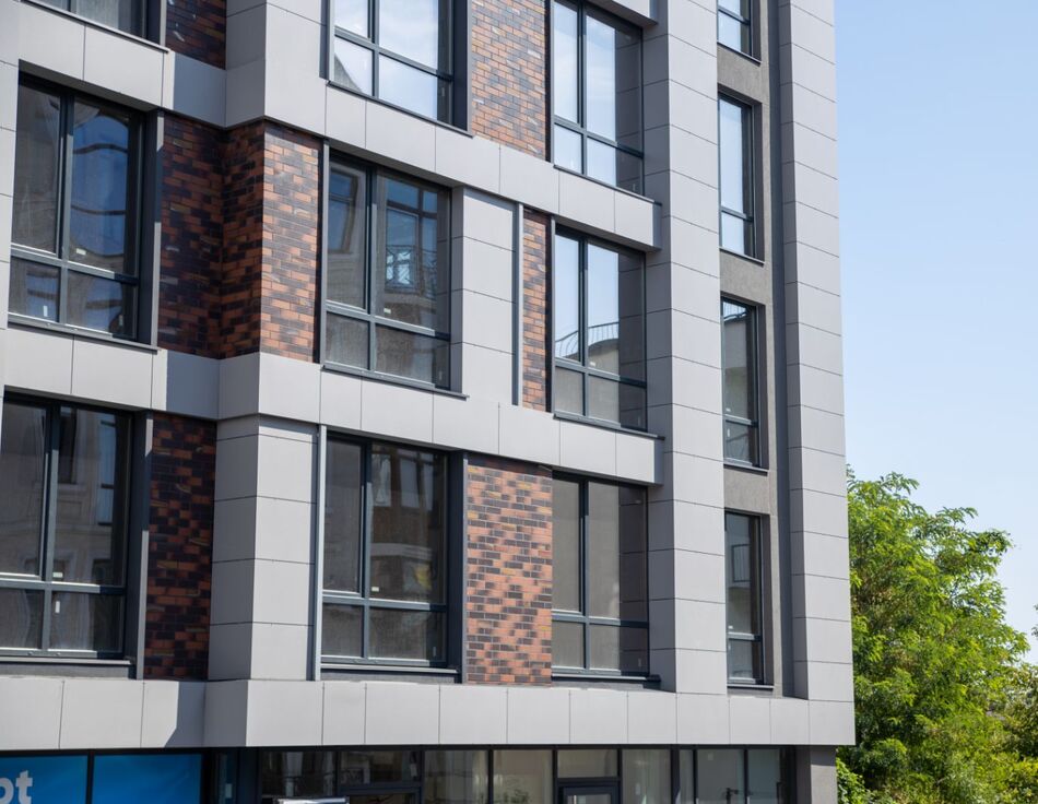 Замовник поставив задачу створити комбінований фасад зі склінням та навісним вентильованим фасадом. Водночас головним завданням було втілити цікаве та сучасне архітектурне рішення для нового житлового комплексу м. Києва. Відповідно до завдання клієнта, наша команда розробила дизайнерський проєкт з майбутнім монтажем. У роботі використовувалися металопластикові конструкції WDS 6S, фасадні системи KMD F50 та навісний вентильований фасад KMDVF. Дякуємо клієнту за довіру та надану можливість.